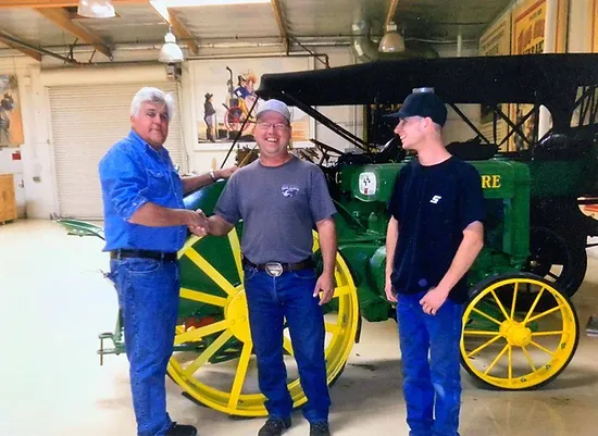 It’s a Saturday morning and my wife’s phone rings. The caller ID says Jay Leno! We were invited to see his collect of amazing cars, however the main reason was to show him how to start the 1927 John Deere D we restored. While Jay was filming a show, we got to see his collection, have lunch with him and his crew and just hangout for the day. Needless to say, meeting Jay Leno was huge for the Percival’s!